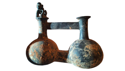 Cuando se abrió la tumba, se descubrieron varios artefactos bien conservados, entre ellos un aríbalo o turpo, una gran vasija de cerámica utilizada habitualmente para almacenar y transportar líquidos como agua o chicha. La presencia de un vaso doble en la tumba sugiere que tenía un significado ritual o ceremonial, ya que se han hallado artefactos similares en otros enterramientos antiguos. Estas vasijas, de bella factura, ofrecen una visión de la expresión artística y las prácticas simbólicas de la época y sugieren las creencias espirituales que guiaban a las sociedades antiguas.