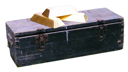 After a long time of research for treasures in the greek mountains, the hobby detectorist Mr. Vulgaris and his partner made the finding they were hoping for since a long time. They found a wooden chest filled up with several gold bars. The indication on the box "Deutsche Luftwaffe" let assume that the find is most probably part of the lost Guerilla Gold.