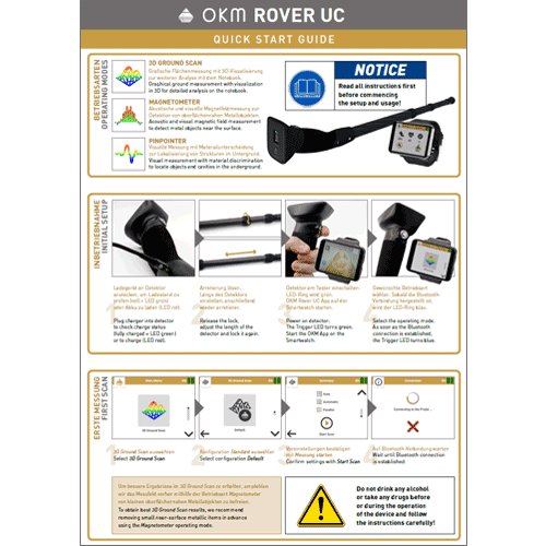 OKM Schnellstart-Anleitungen, auch als Quick Start Guides bezeichnet, bieten präzise Schritt-für-Schritt-Anleitungen, um Ihren OKM Detektor schnell einzurichten und sofort von den Funktionen zu profitieren.